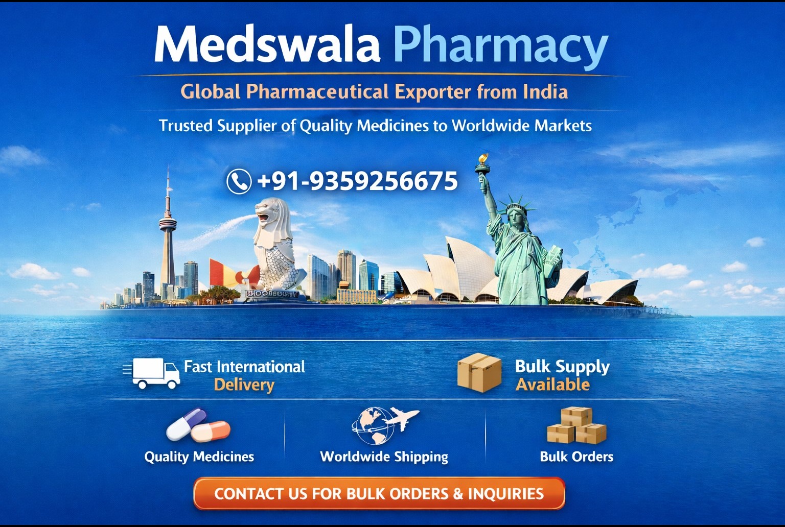Medswala Pharmacy is a reliable exporter of high-quality pharmaceutical products from India, delivering across Thailand with speed and safety. We supply a wide range of medicines including tablets, capsules, and injections to wholesalers, distributors, clinics, and pharmacies.